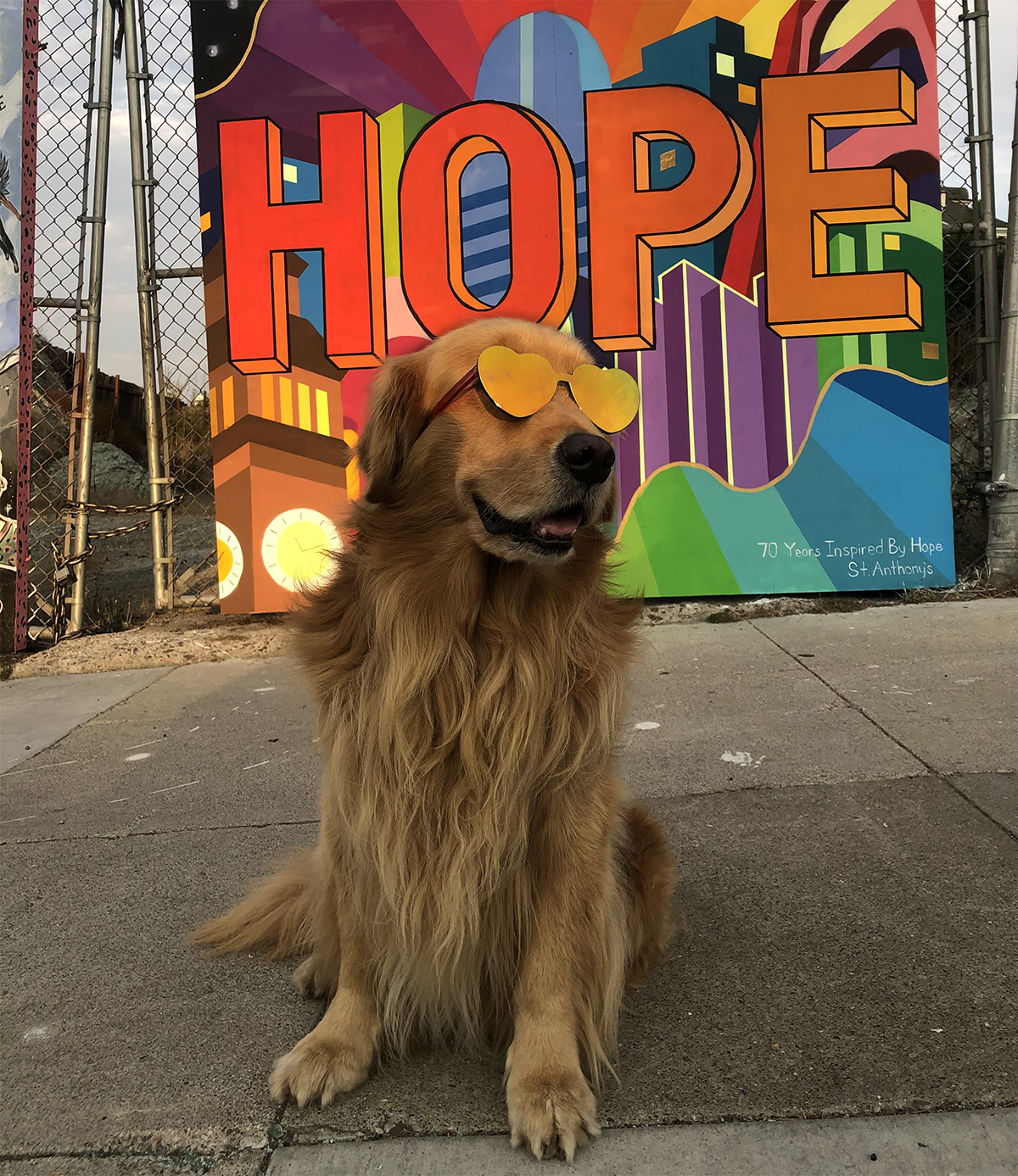 Brixton traveled by air often, always at Linda’s side, a golden co-pilot along the California coast. At Pride, Bay to Breakers, festivals and parades, Brixton showed up dressed, ready, radiant. An ally to the LGBTQ community, he stood - or leaned, or curled beside - so many, a symbol of unconditional welcome.
